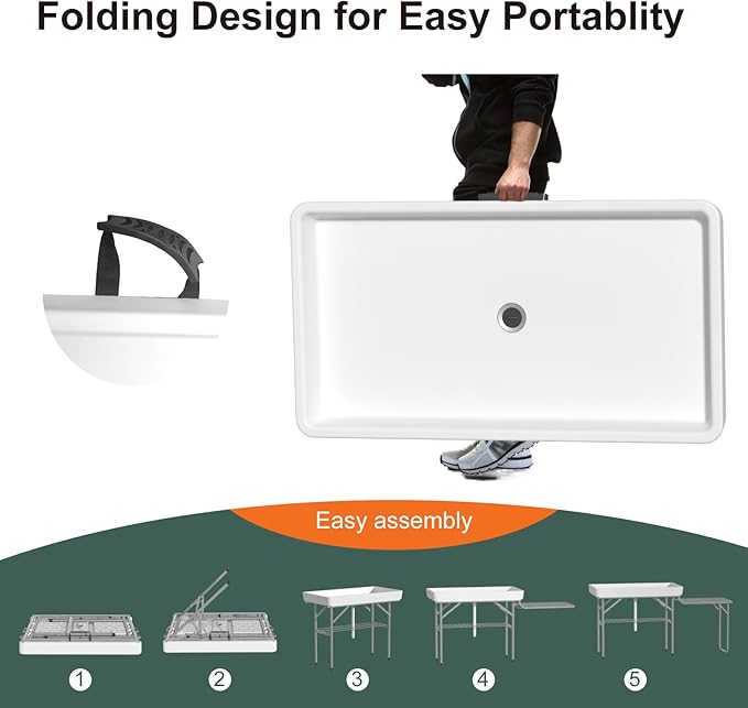4-Foot Ice Cooler Table with Foldable Extension Stand, Drain Hose & Skirt – White